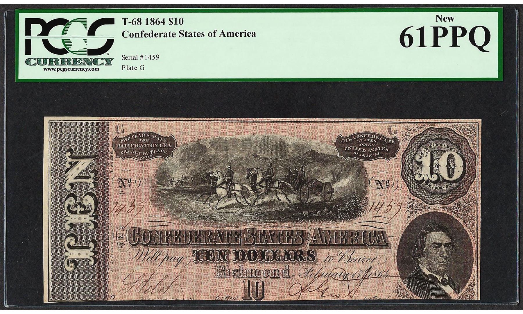 1864 $10 Confederate States of America Note T-68 PCGS New 61PPQ