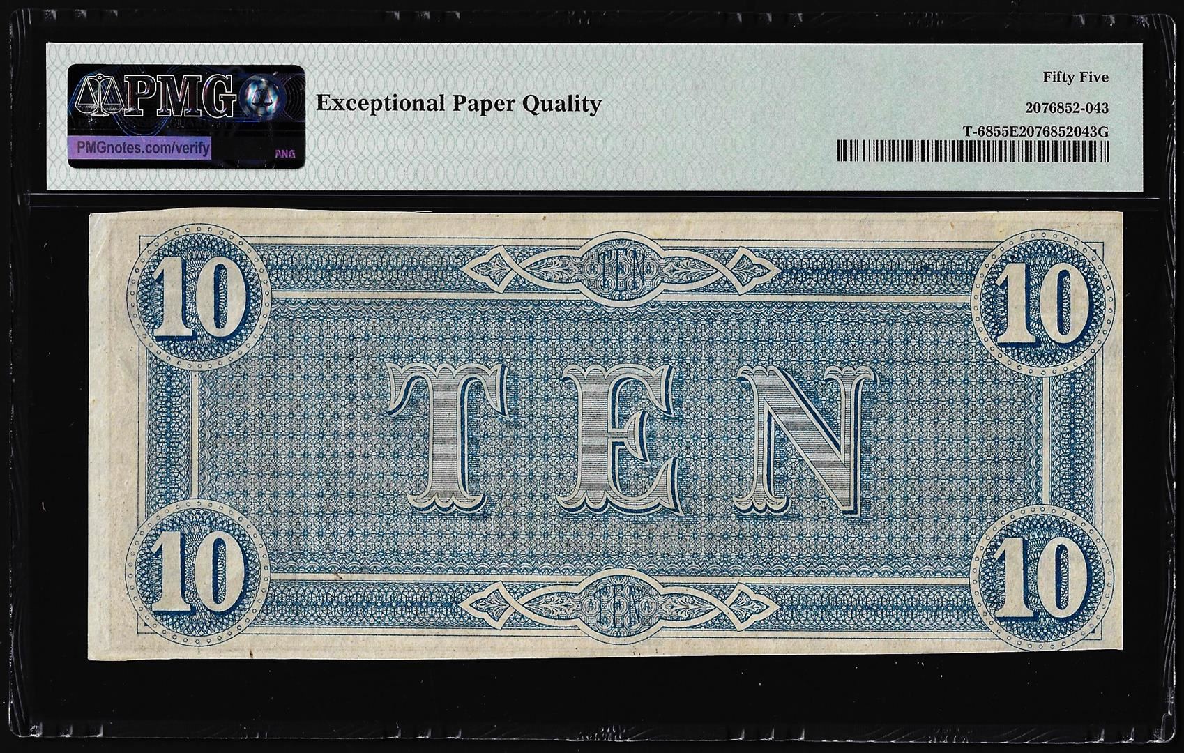 1864 $10 Confederate States of America Note T-68 PMG About Uncirculated 55EPQ