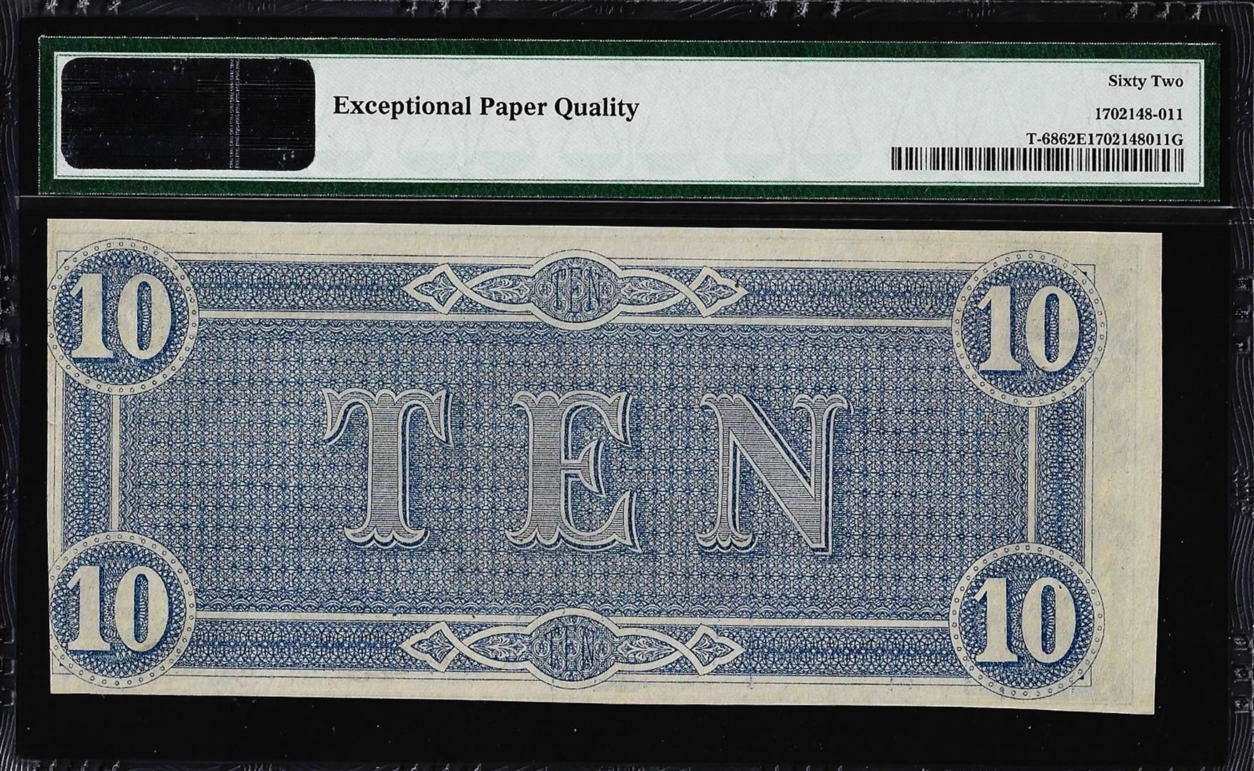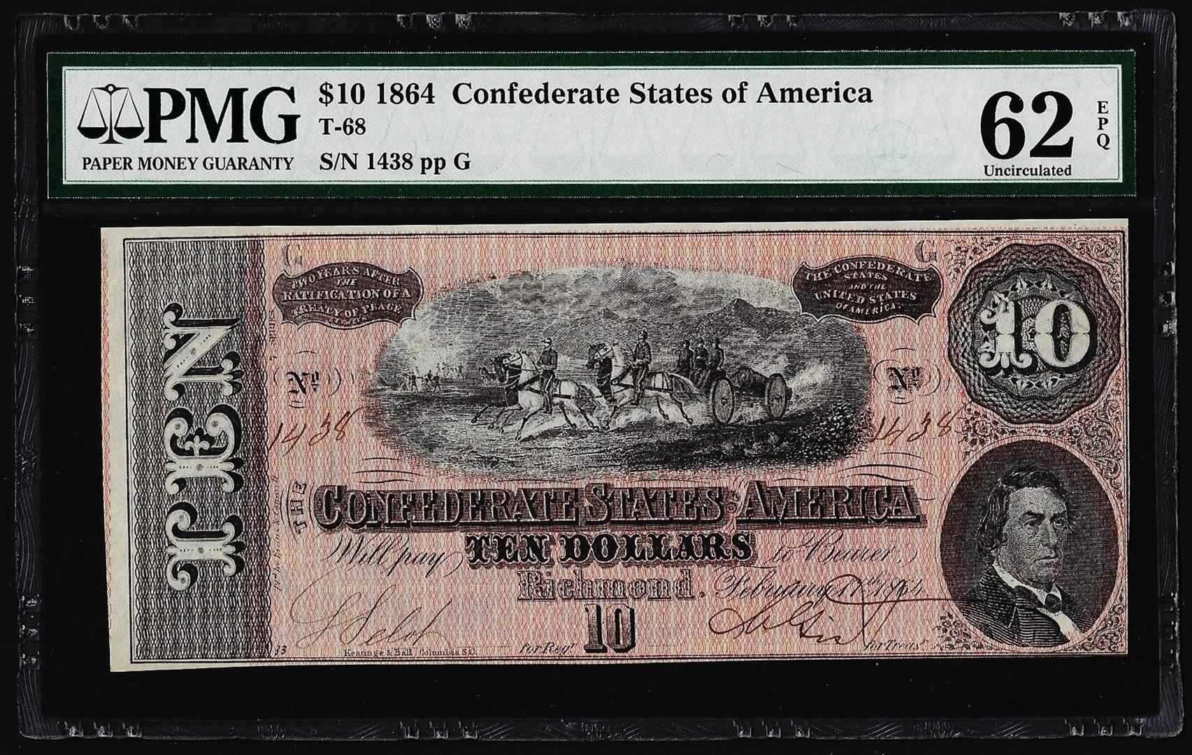 1864 $10 Confederate States of America Note T-68 PMG Uncirculated 62EPQ