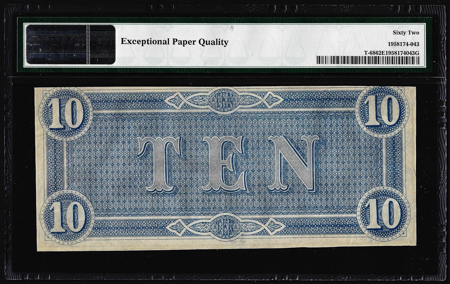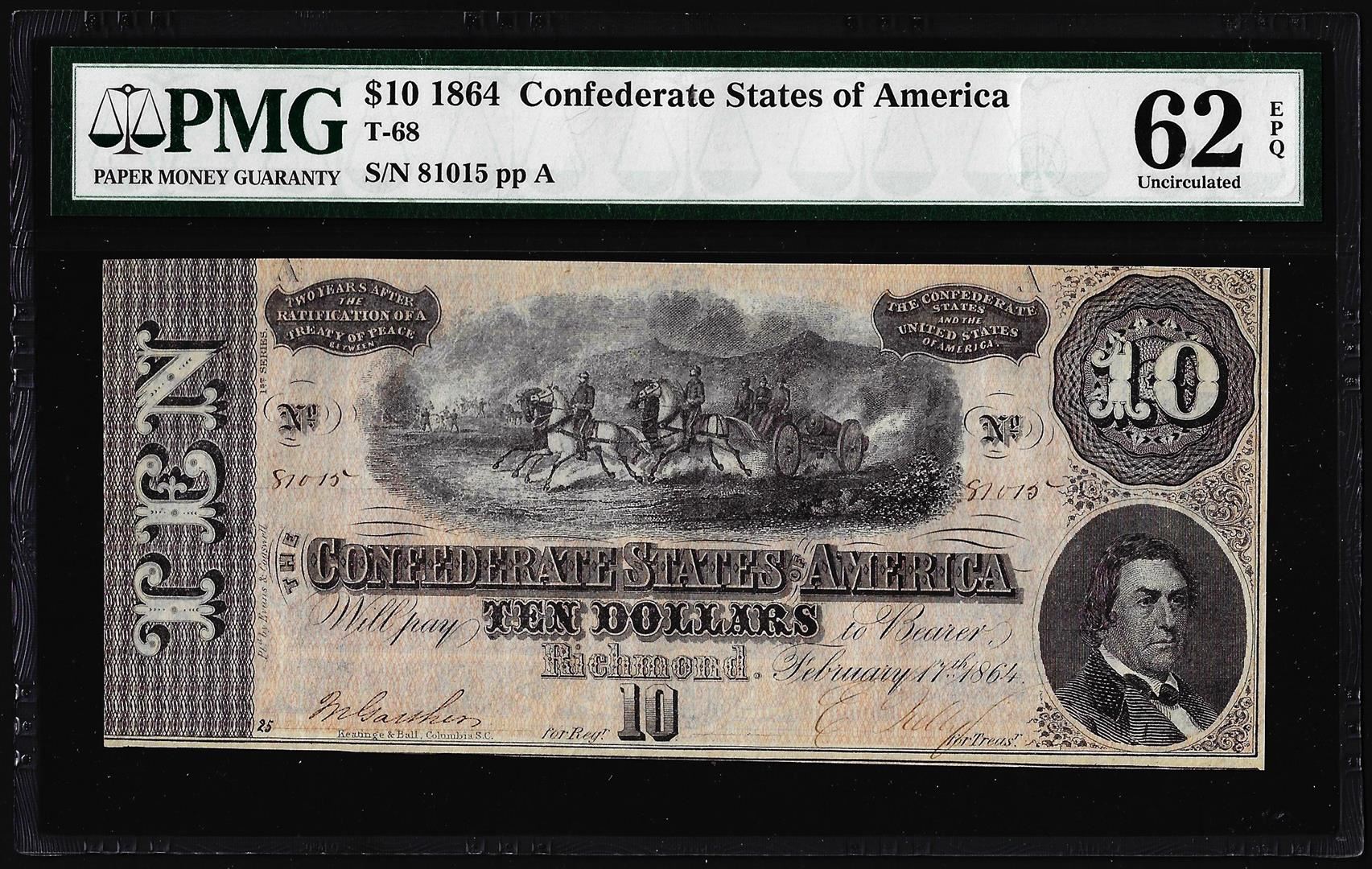1864 $10 Confederate States of America Note T-68 PMG Uncirculated 62EPQ