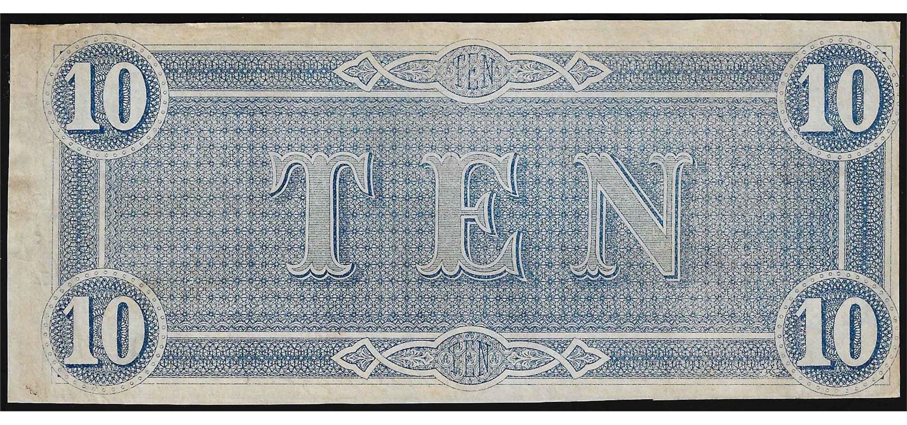 One 1864 $10 Confederate States of America Note.