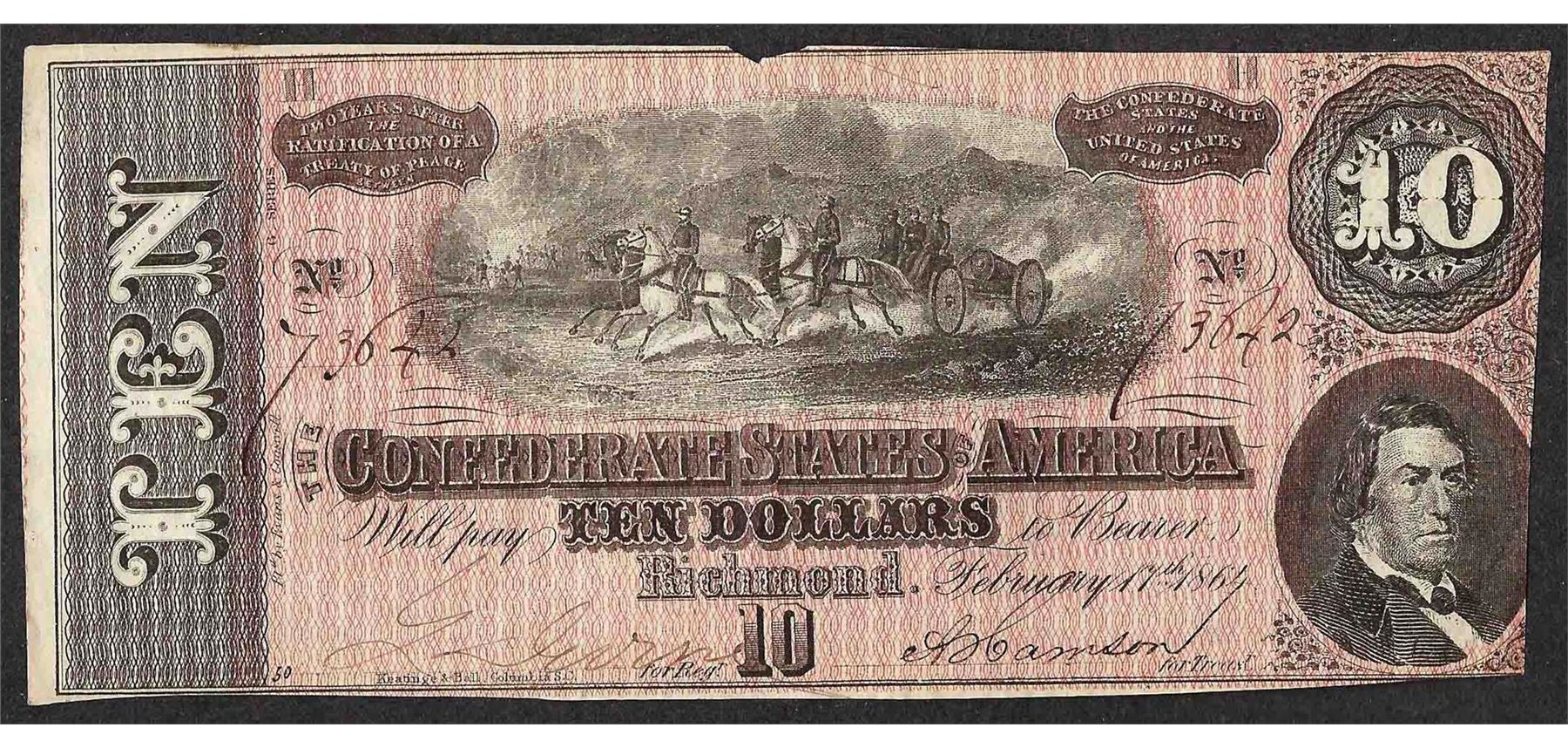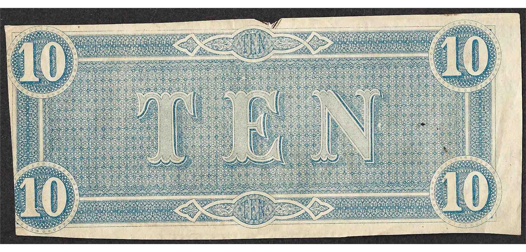 One 1864 $10 Confederate States of America Note.