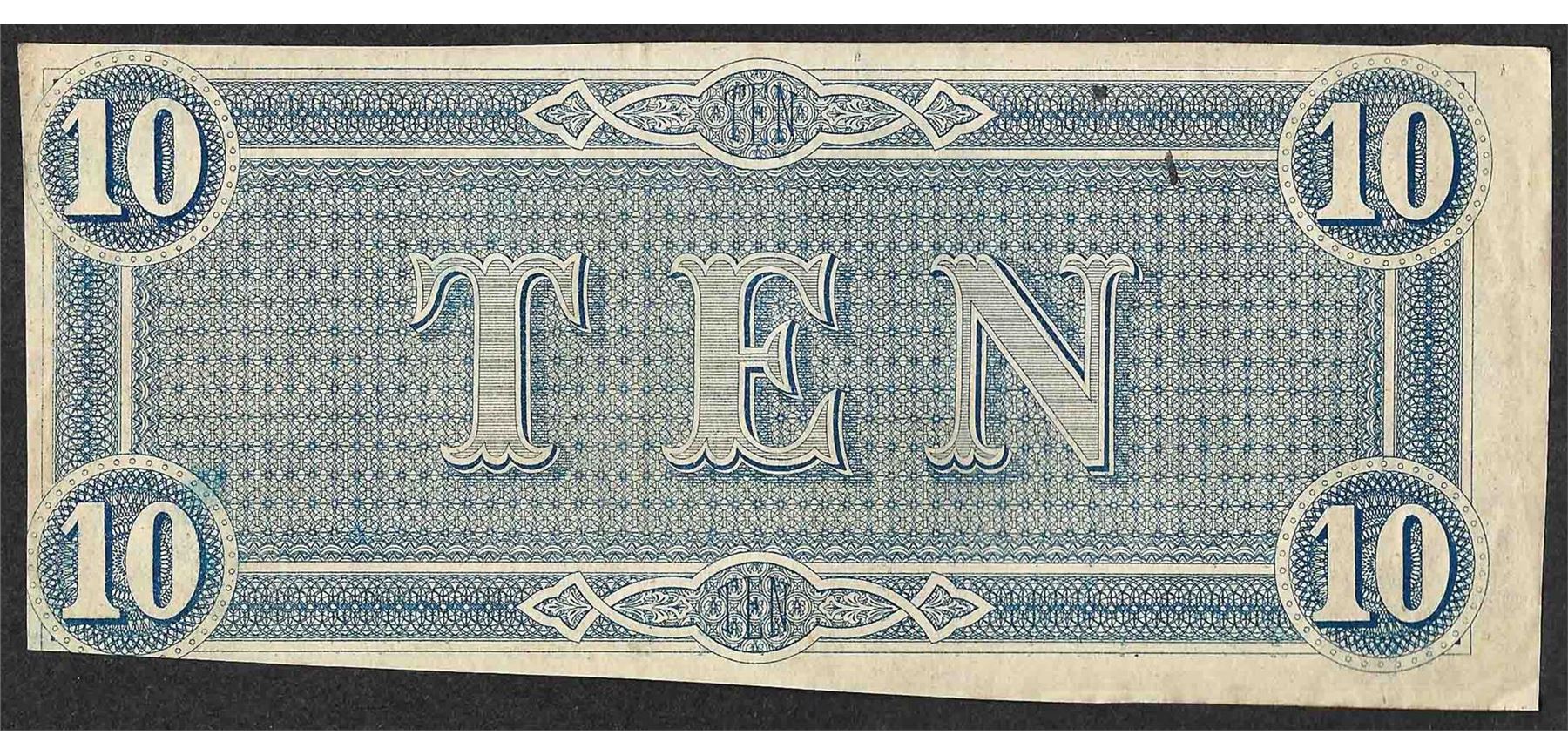 One 1864 $10 Confederate States of America Note.
