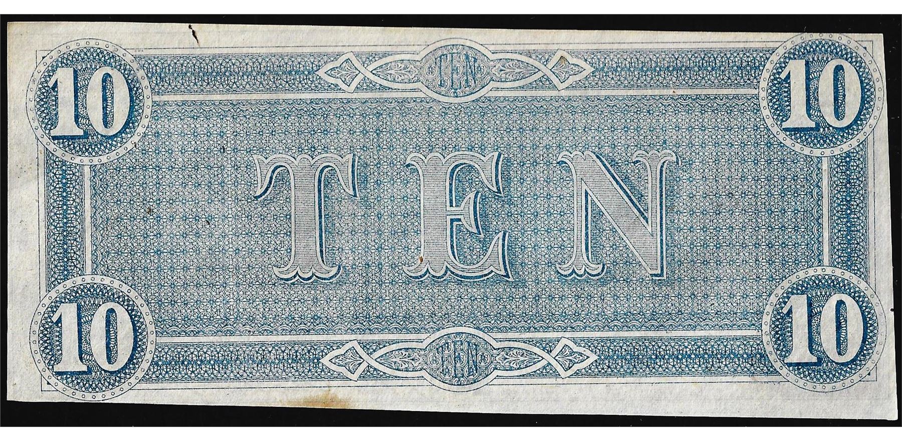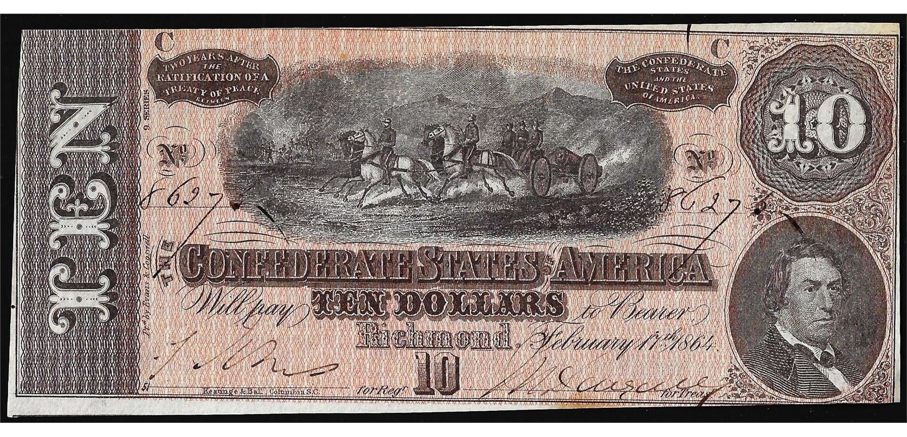 One 1864 $10 Confederate States of America Note.