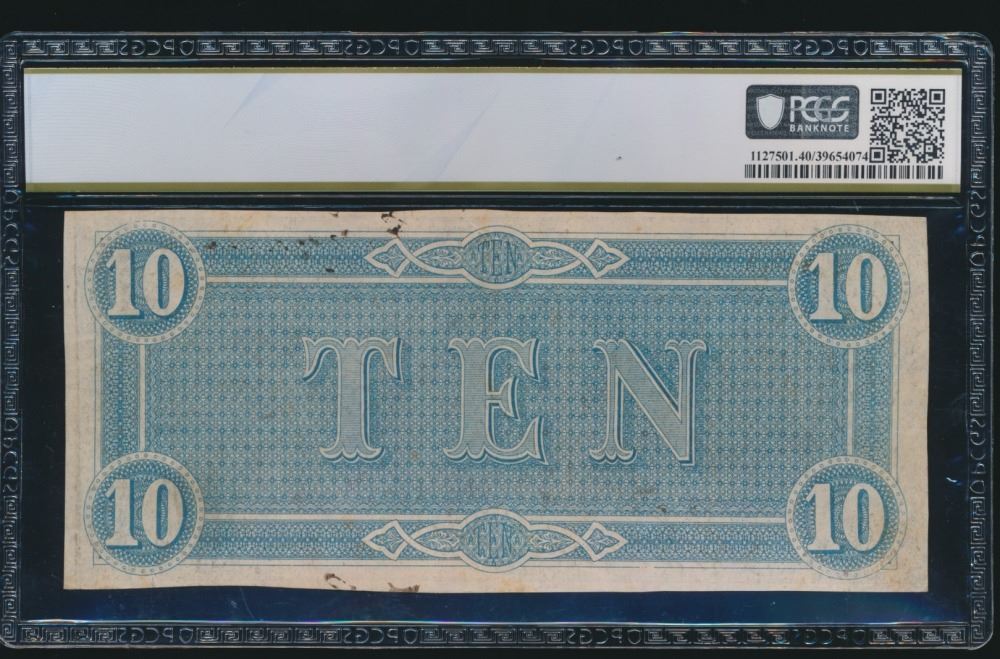 One 1864 $10 Confederate States of America T-68 PCGS 40.