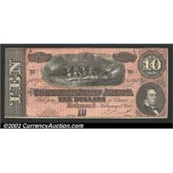 1864 $10 Horses pulling Cannon; R.M.T. Hunter on right, T-68, CU.