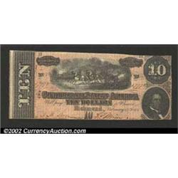 1864 $10 Horses pulling Cannon; R.M.T. Hunter on right, T-68, VF-XF.