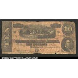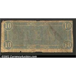 1864 $10 Horses pulling Cannon; R.M.T. Hunter on right, T-68, Fine.