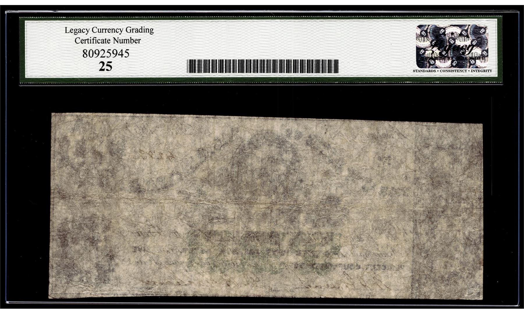 Any coins sold referencing a third-party grading service are sold AS IS without any express or implied warranty. Notes sold referencing a third-party grading service are sold AS IS without any express or implied warranty. Grading, condition or other attributes of any lot may have a material effect on its value, and the opinion of others, including third-party grading services may differ with that of BKA. BKA shall not be bound by any prior or subsequent opinion, determination, or certification by any grading service. Bidder specifically waives any claim to right of return of any item because of the opinion, determination, or certification, or lack thereof, by any grading services. Third-party graded notes are not returnable for any reason whatsoever.