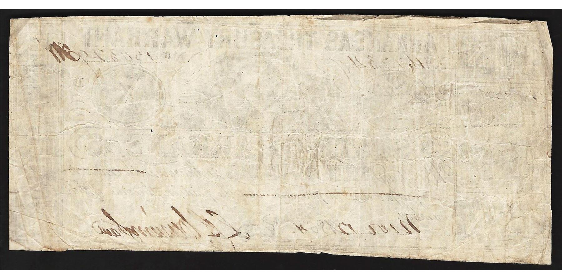 One 1864 $10 State of Arkansas Treasury Warrant Note.