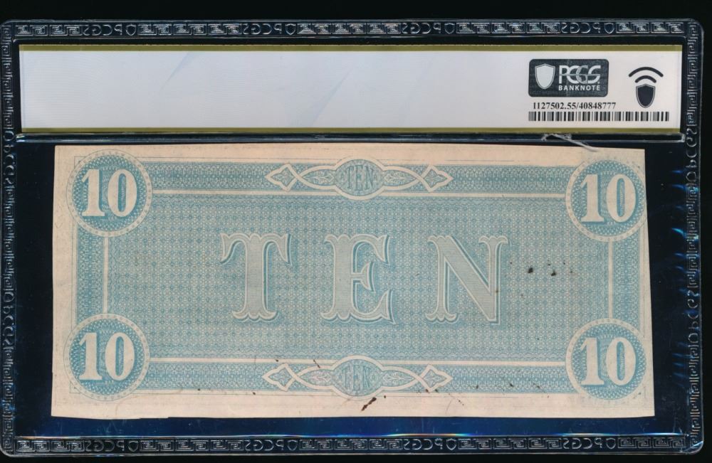 One 1864 $10 T-68 Confederate PCGS 55PPQ.