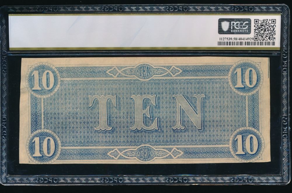 One 1864 $10 T-68 Confederate States of America PCGS 58PPQ.
