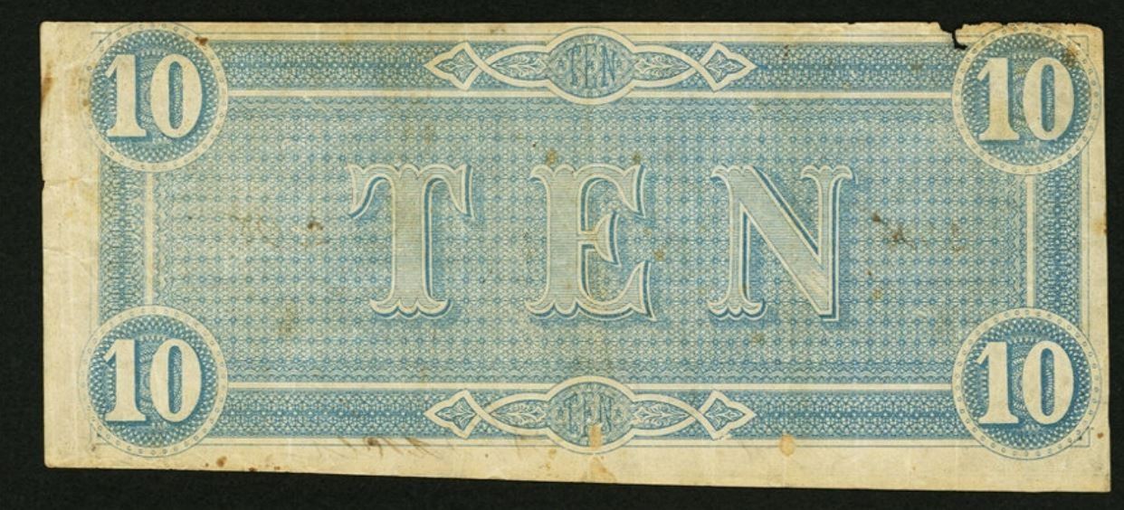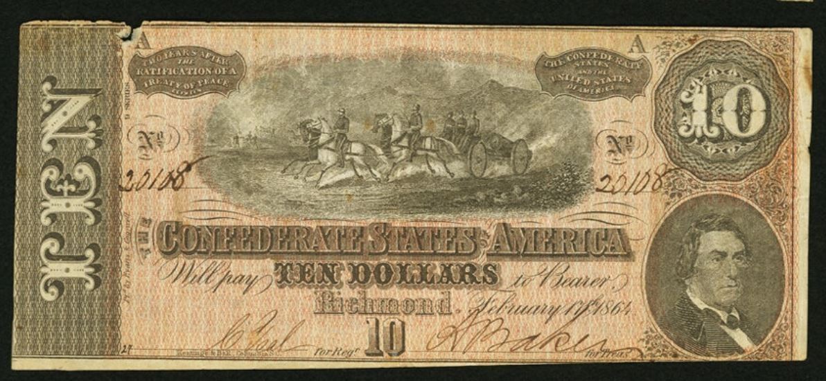 One 1864 $10 T68 Confederate States of America Note.