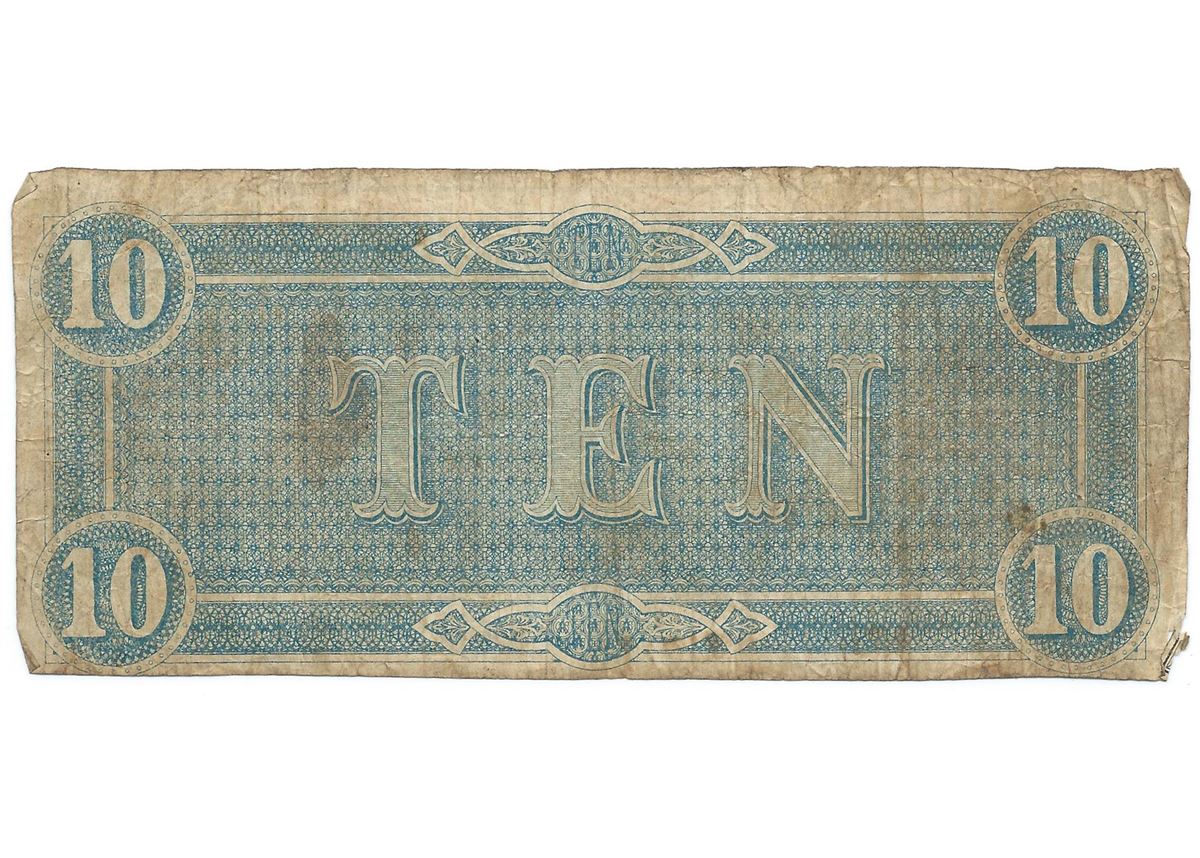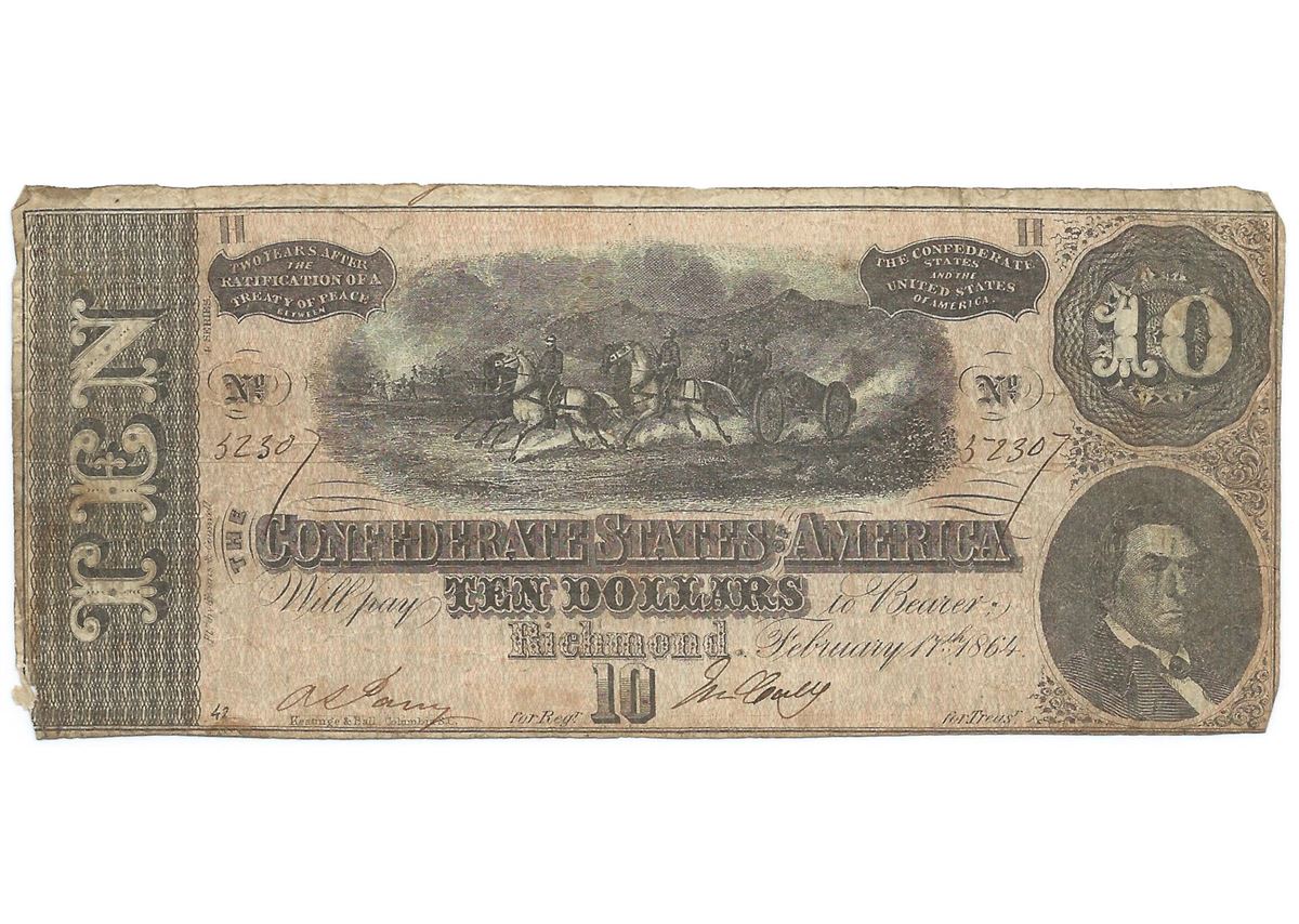 One 1864 $10 The Confederate States of America Note T-68 CC