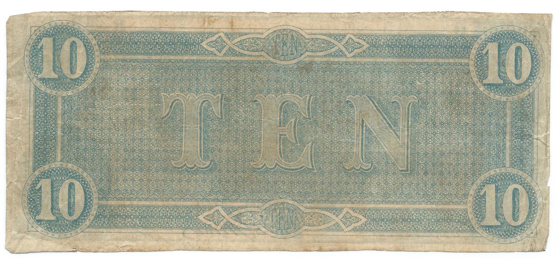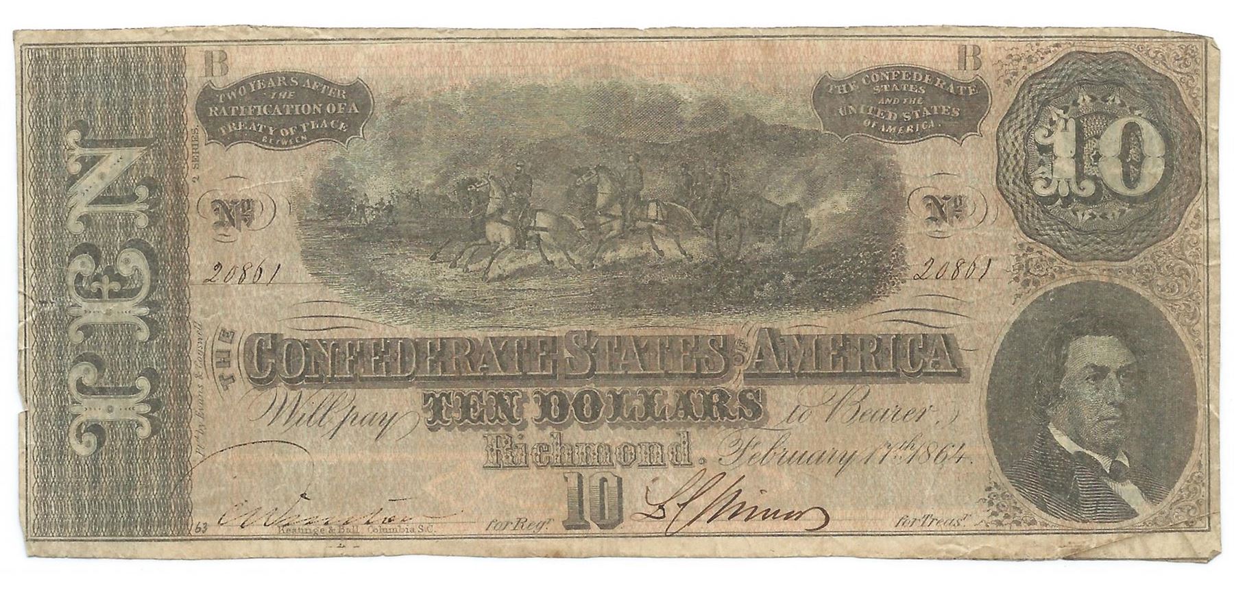 One 1864 $10 The Confederate States of America Note T-68 CC