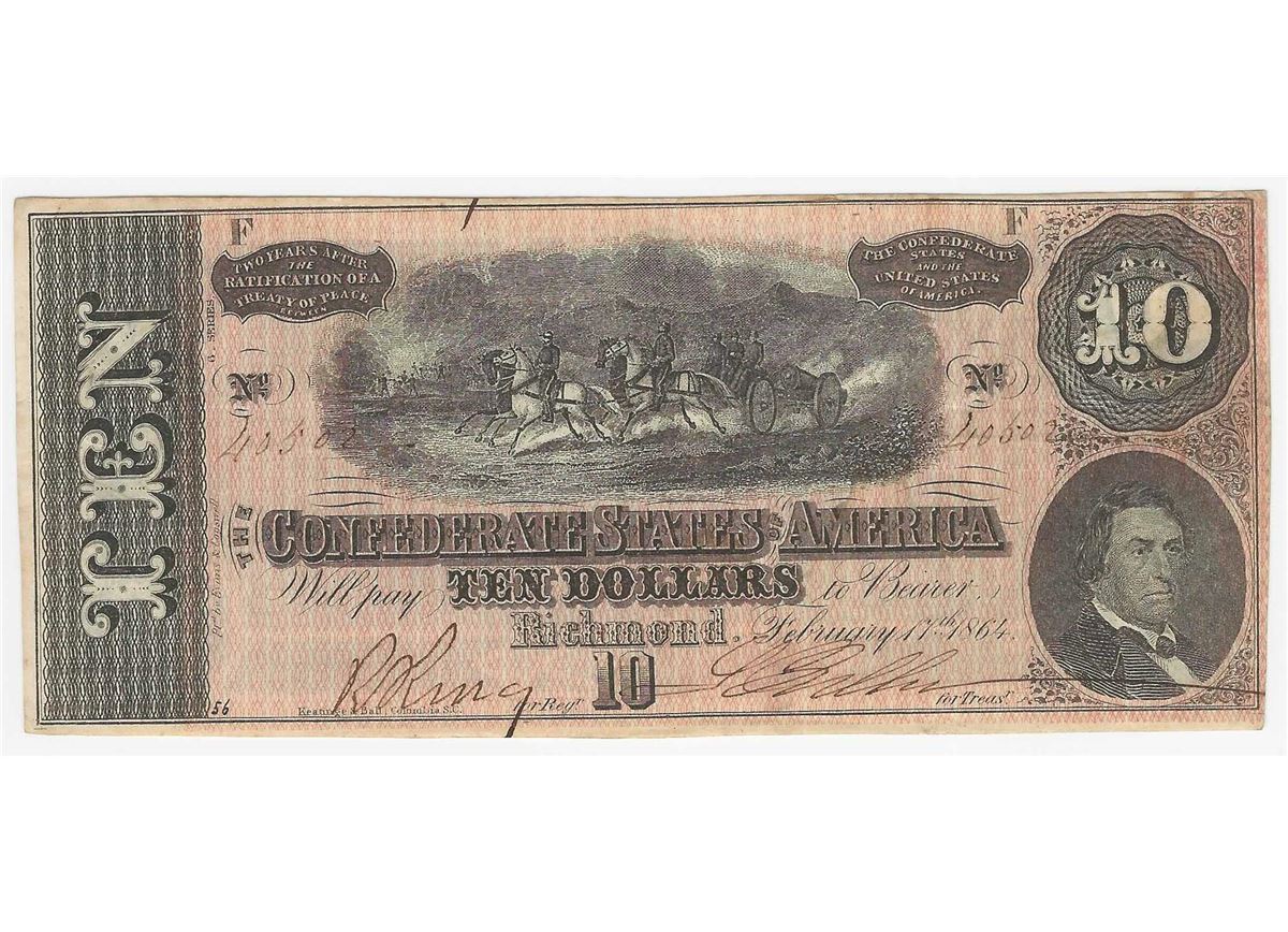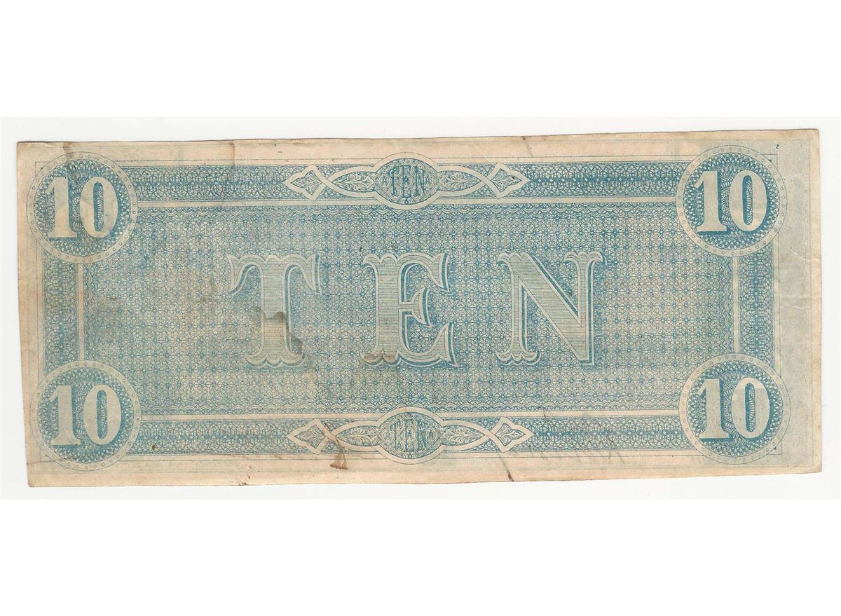 One 1864 $10 The Confederate States of America Note.