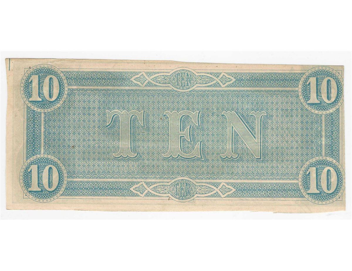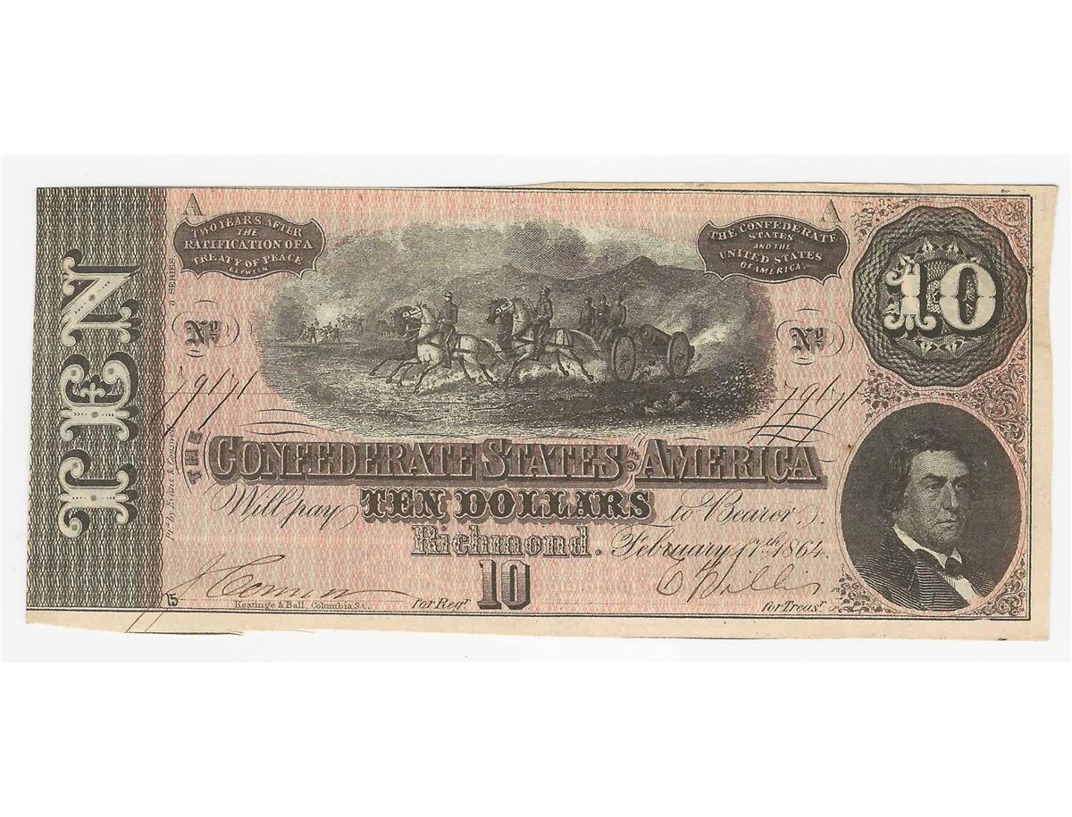 One 1864 $10 The Confederate States of America Note.