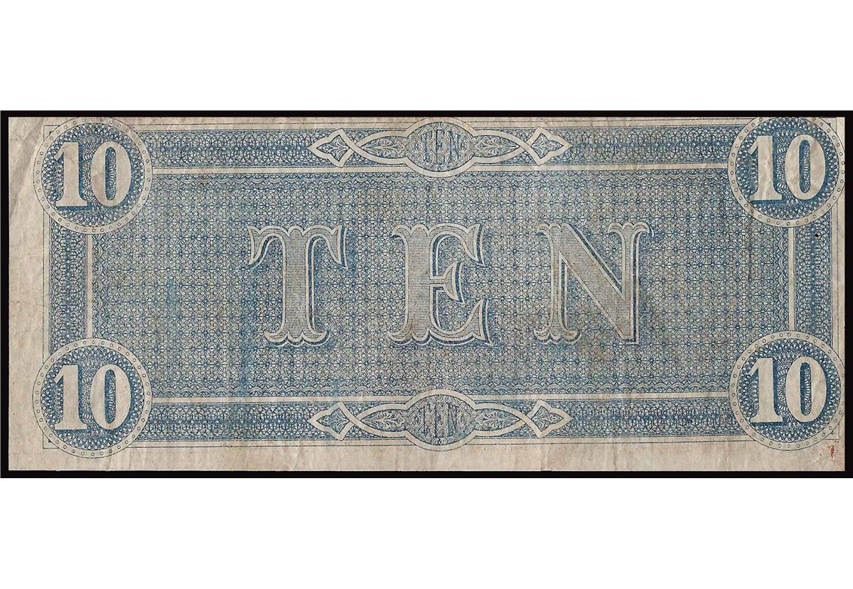 One 1864 $10 The Confederate States of America Note.
