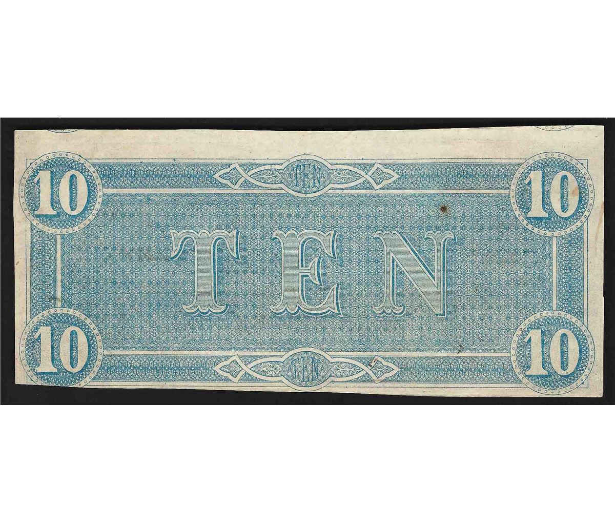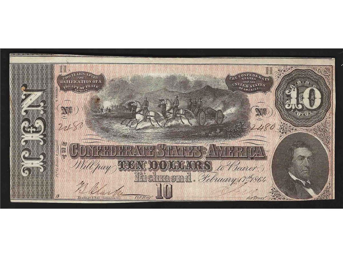 One 1864 $10 The Confederate States of America Note.