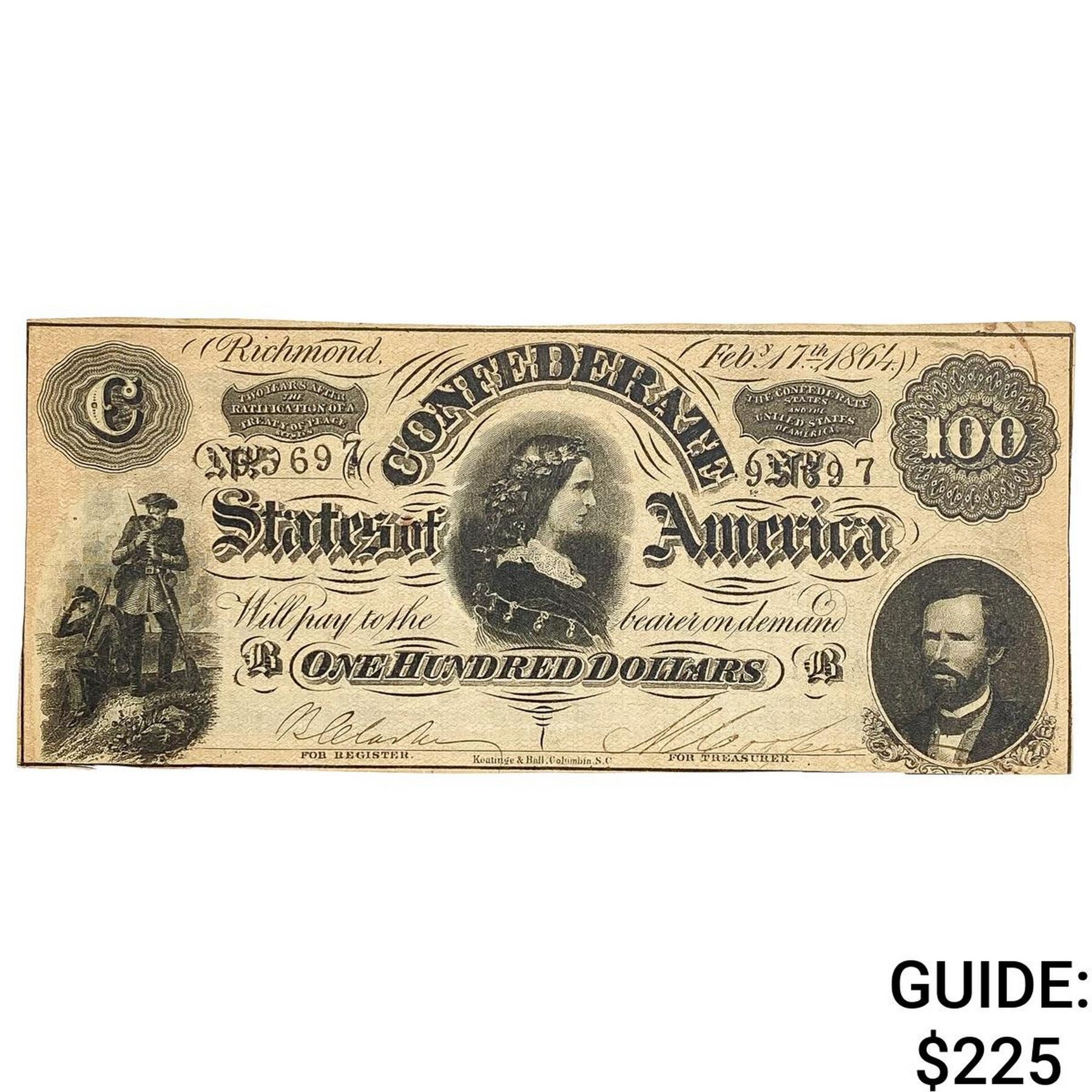 1864 $100 CSA Richmond Large Note
