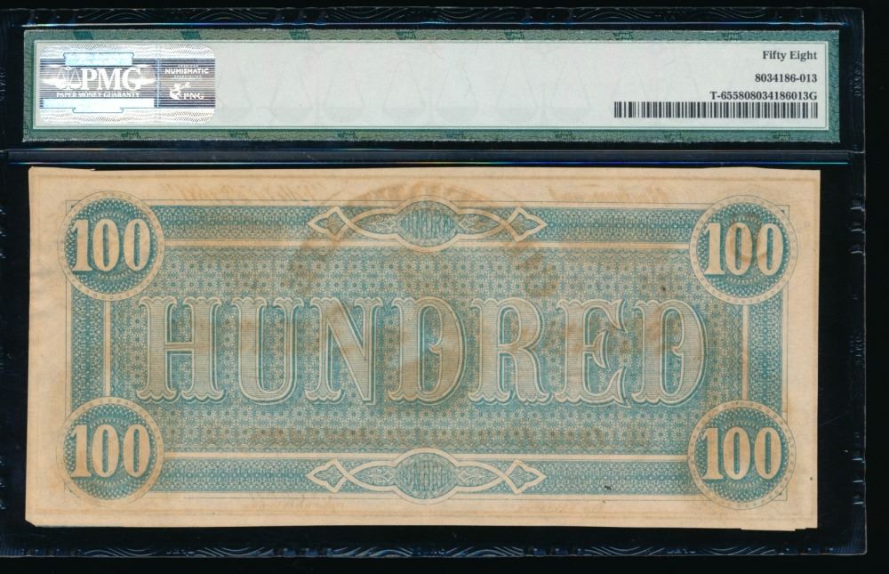 One 1864 $100 Confederate States of America Note PMG 58.