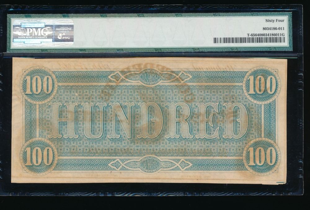 One 1864 $100 Confederate States of America Note PMG 64.