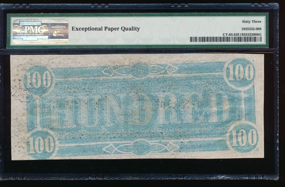 One 1864 $100 Havana Counterfeit Confederate Note PMG 63EPQ.