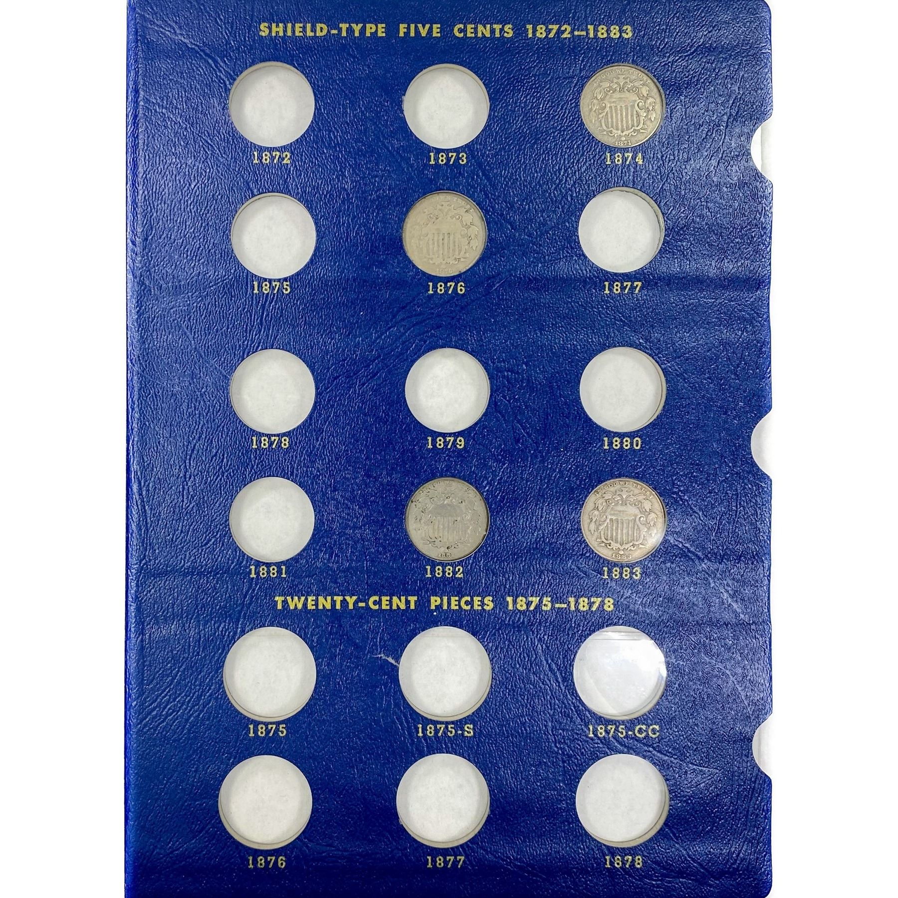 1864-1883 2c, 3c, Shield 5c Coin Book (20 Coins)