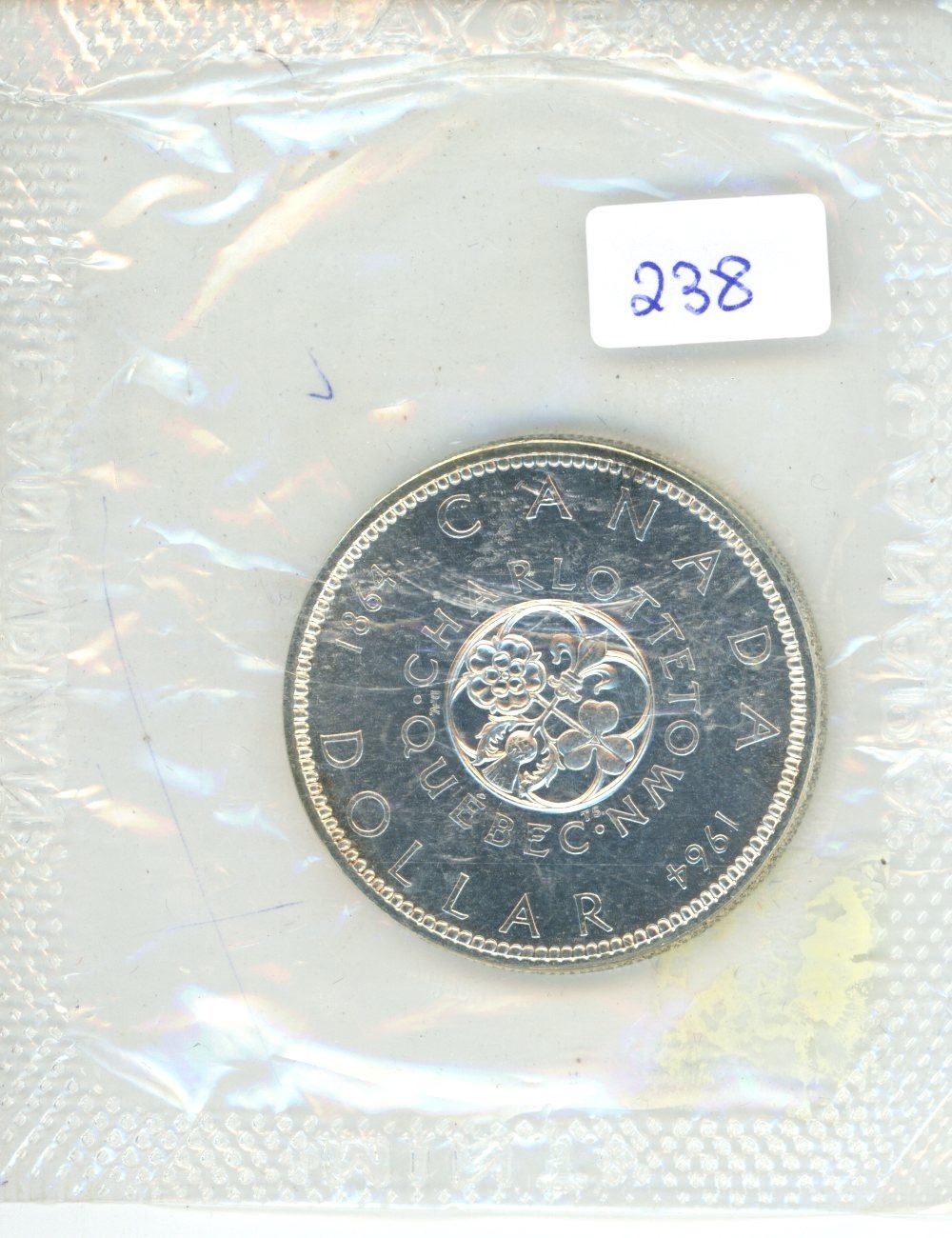 1864 – 1964 Canadian Silver Dollar. Commemorates the 100th Anniversary of the meetings in Charlottetown & Quebec City that led to Confederation. House in its original Royal Canadian Mint plastic.