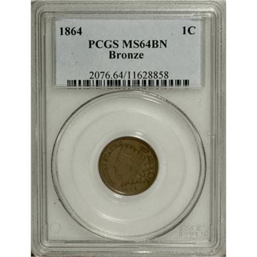 1864 1C Bronze No L Brown MS64 PCGS