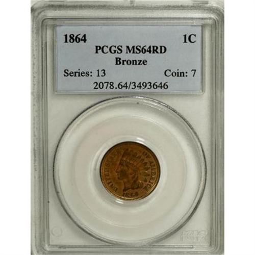 1864 1C Bronze No L MS64 Red PCGS. PCGS Population