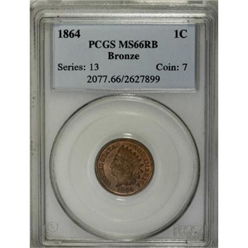 <B>1864 1C Bronze No L MS66 Red and Brown PCGS.</B></I> A carefully preserved and remarkably appealing example of the initial bronze Indian cent issue. The light copper-orange surfaces show occasional elements of mahogany and sage. Population: 21 in 66 Red and Brown, 0 finer (3/08).<BR><BR><B>Coin Engraver:</B> James B. Longacre<BR><BR><b>Shipping:</b> Coins & Currency (<a target="_blank" href="http://www.heritageauctions.com/common/shipping.php">view shipping information</a>)