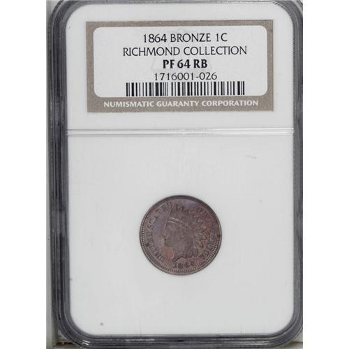 1864 1C Bronze No L PR64 Red and Brown NGC. Ex: Richmo