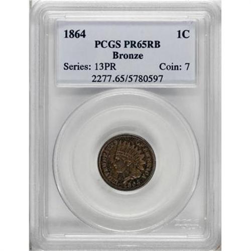 <B>1864 1C Bronze No L PR65 Red and Brown PCGS.</B></I> Though not so elusive as its With L counterpart, the 1864 No L Bronze proofs are challenging, with an estimated mintage of slightly over 150 specimens. This visually interesting Gem is largely violet on the obverse, though the margins are honey-gold, and the reverse has a streaky balance between the two colors. Population: 31 in 65 Red and Brown, 15 finer (3/08).<BR><BR><B>Coin Engraver:</B> James B. Longacre<BR><BR><b>Shipping:</b> Coins & Currency (<a target="_blank" href="http://www.heritageauctions.com/common/shipping.php">view shipping information</a>)