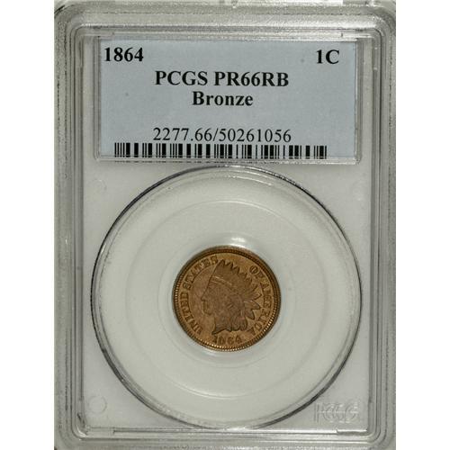 <B>1864 1C Bronze No L PR66 Red and Brown PCGS.</B></I> While the bronze No L proof cents of 1864 are less common than their copper-nickel cousins, they are certainly more available than the bronze proofs that bear Longacre's initial. This glowing reddish-tan proof is among the finest survivors from an estimated mintage of 150 specimens, boldly impressed and immensely appealing. Population: 14 in 66, 1 finer (3/07).<BR><BR><b>Shipping:</b> Coins & Currency (<a target="_blank" href="http://www.heritageauctions.com/common/shipping.php">view shipping information</a>)