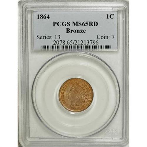 <B>1864 1C Bronze No L MS65 Red PCGS.</B></I> PCGS Population (106/31). NGC Census: (56/26). Mintage: 39,233,712. Numismedia Wsl. Price for NGC/PCGS coin in MS65: $765. (#2078)<BR><BR><B>Coin Engraver:</B> James B. Longacre<BR><BR><b>Shipping:</b> Coins & Currency (<a target="_blank" href="http://www.heritageauctions.com/common/shipping.php">view shipping information</a>)