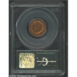 1864 1C Bronze PR65 Red PCGS. Beginning in July 1864, the Mint substituted bronze Cents for their copper-nickel counterparts in its proof sets. Including the limited number of singles that were also delivered, the original mintage of the proof 1864 bronze Indian Cent is believed to be in the neighborhood of just 150 pieces. There are precious few examples extant at the PR65 Red grade level, the present Gem displaying fulsome mint luster in orange-red shades. Fully brought up throughout, the surfaces are silky-smooth from rim to rim. We last offered a similarly graded specimen as lot 6036 in our July 2002 New York Signature Sale. That coin traded hands for $7,188. Population: 9 in 65 Red, with just two finer (10/02).From the Joseph P. Gorrell Collection. Important notice: We expect to be auctioning lots at the rate of 200-250 per hour. Sometimes eBay Premier live bid software cannot keep up with that pace, so we strongly recommend that you place a realistic proxy bid now as insurance to avoid disappointment. Also please note that all Heritage/CAA lots purchased through eBay Premier carry a 20% Buyer's Premium. Please make sure you read the Terms and Conditions.