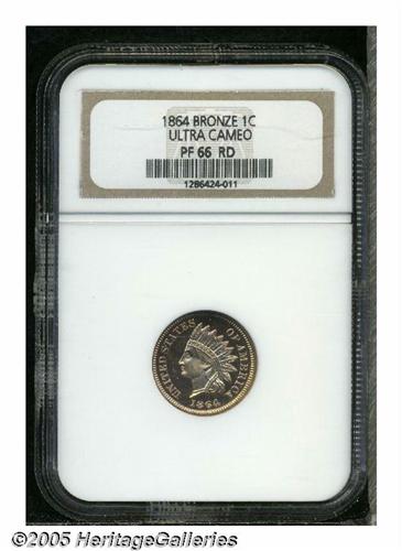 1864 1C Bronze PR66 Red, Ultra Cameo NGC. Beginni