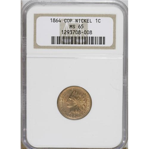 1864 1C Copper-Nickel MS65 NGC. Bright golden-tan surf