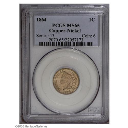 1864 1C Copper-Nickel MS65 PCGS. This untoned Indian H 1864[1C] Copper-Nickel MS65 PCGS.