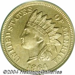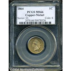 <B>1864<1C> Copper-Nickel MS66 PCGS.</B></I> Sharply struck and with exceptional eye appeal. The feathers are very well defined except at the extreme tips, while the diamonds are all fully defined. Due to the hardness of the copper-nickel composition, which was still relatively new to the Mint, design details were not always sharp. It is important for today's collector to seek an example that shows good definition. This Gem has rich gold luster with satiny surfaces. <BR><BR><B>Important notice:</B> Heritage usually auctions material at the rate of 200-250 lots per hour. On some occasions eBay Live bid software or the Internet may not be able to keep up with the pace of the auction. We recommend placing a realistic absentee bid now as insurance to avoid disappointment. Occasionally the auctioneer may eliminate or reject an eBay Live bid, and the auctioneer may also reopen a lot after the close of the eBay live bidding (usually because we missed an audience bid), and may reject your bid even if it shows you as the winning bidder. By bidding via eBay Live, you agree that Heritage may award the lot to another bidder at its sole discretion under the circumstances described above or any other reasonable circumstances. Since eBay bids are not shown to us until we open the lot on the floor, we treat those bids just like floor bids. In most cases the floor responds before the eBay bid is presented to us, due to Internet lag time, so for consistency we have made it a policy that floor bids are always considered first over tie eBay live bids. Also please note that all Heritage lots purchased through eBay Live carry a 20% Buyer's Premium. Please make sure you read the Terms and Conditions before you bid. </span></font></tr></table></td></tr></table>