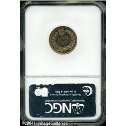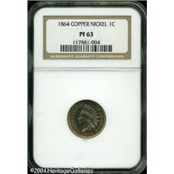 1864 1C Copper-Nickel PR63 NGC. Bright coppery-tan <B>1864 1C Copper-Nickel PR63 NGC.</B></I> Bright coppery-tan patina, and boldly struck. A few obverse toning spots are not particularly bothersome. This piece generates considerable eye appeal. <BR><BR><B>Important notice:</B> Heritage usually auctions material at the rate of 200-250 lots per hour. On some occasions eBay Live bid software or the Internet may not be able to keep up with the pace of the auction. We recommend placing a realistic absentee bid now as insurance to avoid disappointment. Occasionally the auctioneer may eliminate or reject an eBay Live bid, and the auctioneer may also reopen a lot after the close of the eBay live bidding (usually because we missed an audience bid), and may reject your bid even if it shows you as the winning bidder. By bidding via eBay Live, you agree that Heritage may award the lot to another bidder at its sole discretion under the circumstances described above or any other reasonable circumstances. Since eBay bids are not shown to us until we open the lot on the floor, we treat those bids just like floor bids. In most cases the floor responds before the eBay bid is presented to us, due to Internet lag time, so for consistency we have made it a policy that floor bids are always considered first over tie eBay live bids. Also please note that all Heritage lots purchased through eBay Live carry a 20% Buyer's Premium. Please make sure you read the Terms and Conditions before you bid. This lot is being auctioned in conjunction with a live floor auction by Heritage Galleries & Auctioneers. All final auction and invoice information will be supplied by Heritage Galleries & Auctioneers, and all other information should be considered preliminary. Lot:5115