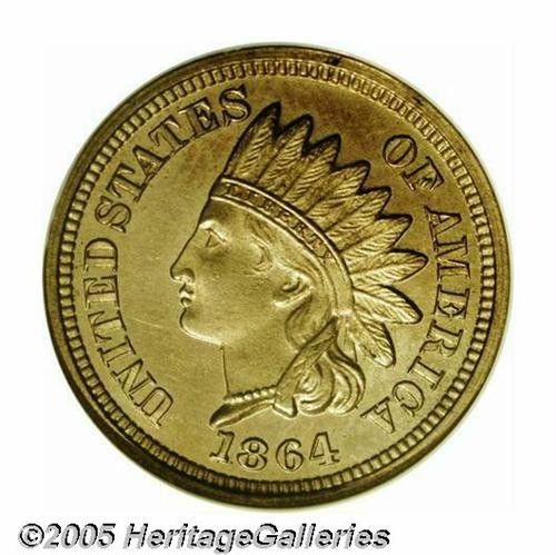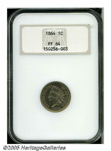 <B>1864<1C> Copper Nickel PR64 NGC.</B></I> Essentially brilliant with just a hint of tan iridescence. A lovely sharply-struck example showing bold definition in virtually all areas. The devices are frosty and contrast nicely with the reflective fields. Although the mintage is not known with certainly, a production figure of 370 pieces is the number most often reported
