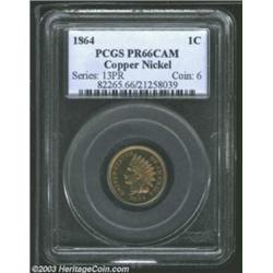 1864 1C Copper-Nickel PR66 Cameo PCGS. A difficult Copper-Nickel proof in any condition, from an ori