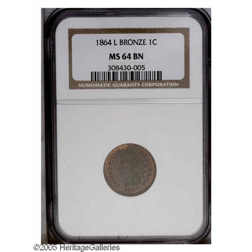 1864 1C L On Ribbon MS64 Brown NGC. The centers are de 1864[1C] L On Ribbon MS64 Brown NGC.