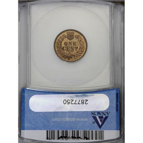 <B>1864<1C> L On Ribbon MS64 Red and Brown ANACS.</B></I> FS-006.71, Snow-3. Wispy glossy-tan patina has accumulated over the golden-red surfaces of this crisply impressed near-Gem. Both sides are predominantly lustrous, but show a few scattered carbon flecks.