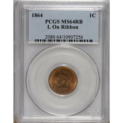 <B>1864 1C L On Ribbon MS64 Red and Brown PCGS.</B></I> Lustrous and boldly struck, with dappled orange-tan and purplish coloration and few surface marks. A nice near-Gem example of this scarce, semi-key issue.<BR><BR><b>Shipping:</b> Coins & Currency (<a target="_blank" href="http://www.heritageauctions.com/common/shipping.php">view shipping information</a>)