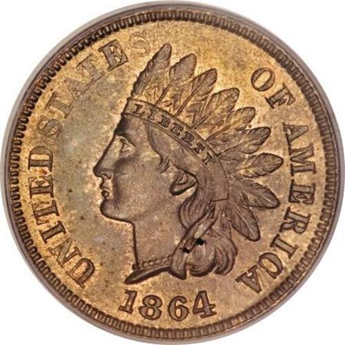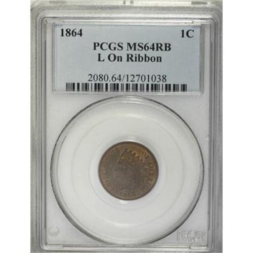 <B>1864 1C L On Ribbon MS64 Red and Brown PCGS.</B></I> Deep mahogany-violet at the centers yields to paler copper-orange at the margins. A pleasingly detailed and fundamentally appealing survivor that shows just a few small marks on the portrait.<BR><BR><B>Coin Engraver:</B> James B. Longacre<BR><BR><b>Shipping:</b> Coins & Currency (<a target="_blank" href="http://www.heritageauctions.com/common/shipping.php">view shipping information</a>)