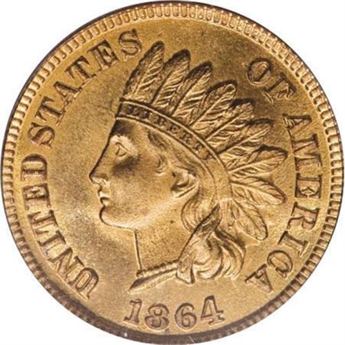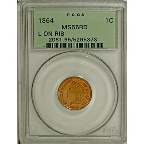 <B>1864 1C L On Ribbon MS65 Red PCGS.</B></I> An attractive survivor from the elusive L on Ribbon variant of the 1864 bronze cent. The pale copper-orange surfaces show subtle olive and lemon tints in the fields. The overall level of definition is excellent, and the four diamonds on the ribbon are fully outlined. Slight evidence of die erosion is present between the feathers of the headdress. Population: 35 in 65 Red, 3 finer (12/07).<BR><BR><B>Coin Engraver:</B> James B. Longacre<BR><BR><b>Shipping:</b> Coins & Currency (<a target="_blank" href="http://www.heritageauctions.com/common/shipping.php">view shipping information</a>)