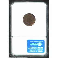 1864 1C L On Ribbon MS65 Red and Brown NGC. A bold striking that has mellowed across the centers wit